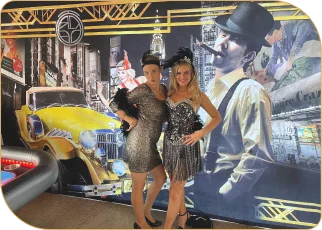 Our grand themed backdrops help create a wonderful setting together with our LED casino tables specifically designed to provide photographic opportunities and create wonderful memories of your fun casino party. We have a selection of casino themes available from Las Vegas to Monte Carlo, 1920s Prohibition or the classy Casino Royale, the choice is yours.